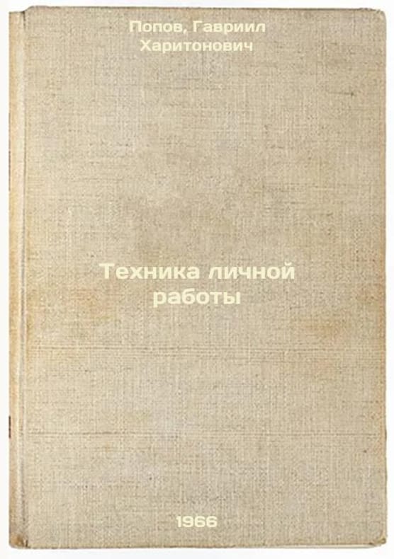 Short description: In Russian. Popov, Gabriel Kharitonovich. The technique of personal work. Moscow: Moscow worker, 1966. The image is provided for reference only. It may reflect condition of one of the available copies or only help in identifying the edition. Please feel free to contact us for a detailed description of the copies available. SKU6452164