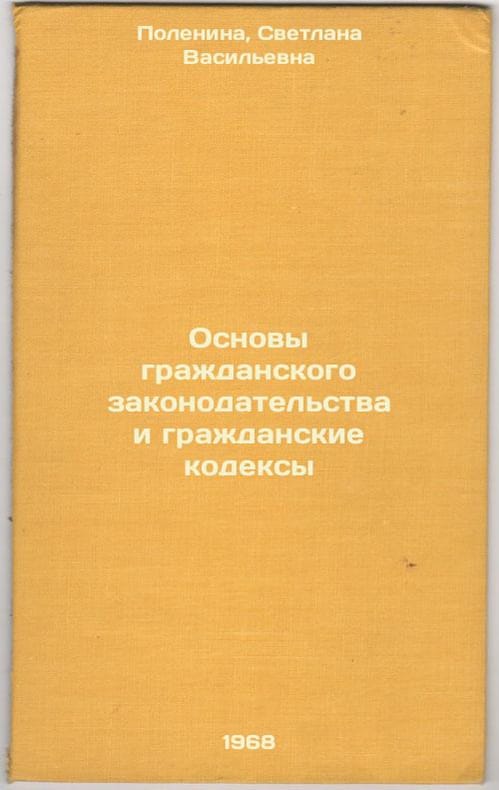 Short description: In Russian. Polenina, Svetlana Vasilievna. Fundamentals of Civil Legislation and Civil Codes. Moscow: Legal Lite, 1968. Osnovy grazhdanskogo zakonodatel'stva i grazhdanskie kodeksy. In Russian /Civil Principles and Civil Codes . The image is provided for reference only. It may reflect condition of one of the available copies or only help in identifying the edition. Please feel free to contact us for a detailed description of the copies available. SKU6455647