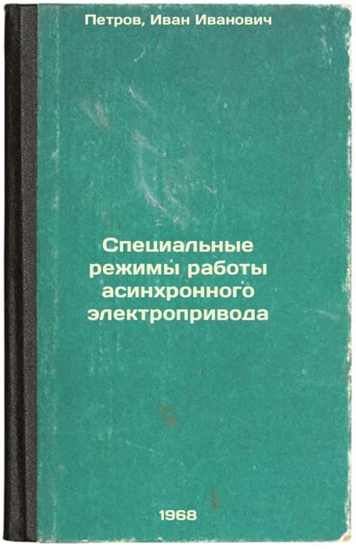 Short description: In Russian. Petrov, Ivan Ivanovich. Special modes of asynchronous electric drive operation. Moscow: Energia, 1968. Please feel free to contact us for a detailed description of the copies available. SKU6462928