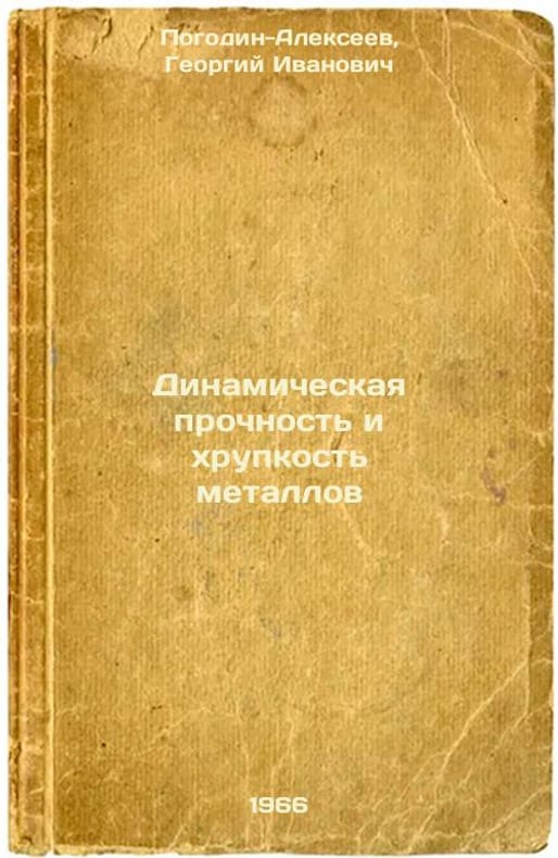 Short description: In Russian. Pogodin-Alekseev, Georgy Ivanovich. Dynamic Strength and Fragility of Metals. Moscow: Machine Building, 1966. Dinamicheskaya prochnost' i khrupkost' metallov. In Russian /Dynamic strength and brittleness of metals . The image is provided for reference only. It may reflect condition of one of the available copies or only help in identifying the edition. Please feel free to contact us for a detailed description of the copies available. SKU6469648