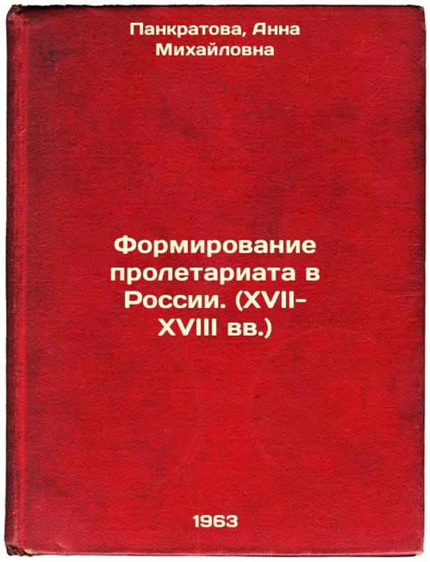 Short description: In Russian. Pankratova, Anna Mikhailovna. Formation of the proletariat in Russia. (17th-18th centuries). Moscow: Publishing House of Acad. sciences of the USSR, 1963. Formirovanie proletariata v Rossii. (XVII-XVIII vv.). In Russian /Formation of the proletariat in Russia. (17th-18th centuries) . The image is provided for reference only. It may reflect condition of one of the available copies or only help in identifying the edition. Please feel free to contact us for a detailed description of the copies available. SKU6475151