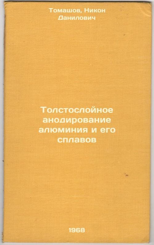Short description: In Russian. Tomashov, Nikon Danilovich. Thick-layer anodizing of aluminium and its alloys. Moscow: Machine Building, 1968. Please feel free to contact us for a detailed description of the copies available. SKU6488363