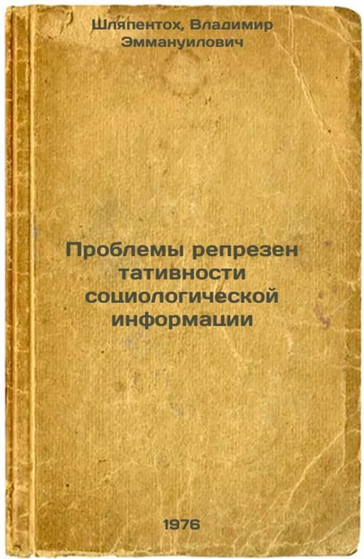 Short description: In Russian. Shlapentokh, Vladimir Emmanuilovich. Problems of Representation of Sociological Information. Moscow: Statistics, 1976. Problemy reprezentativnosti sotsiologicheskoy informatsii. In Russian /Problems with the representativeness of sociological information. The image is provided for reference only. It may reflect condition of one of the available copies or only help in identifying the edition. Please feel free to contact us for a detailed description of the copies available. SKU6937020
