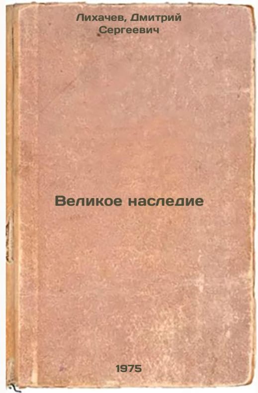 Short description: In Russian. Likhachev, Dmitry Sergeevich. The Great Heritage. Moscow: Sovremennik, 1975. The image is provided for reference only. It may reflect condition of one of the available copies or only help in identifying the edition. Please feel free to contact us for a detailed description of the copies available. SKU6940145