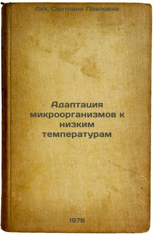 Short description: In Russian. Lyakh, Svetlana Pavlovna. Adaptation of Microorganisms to Low Temperatures. Moscow: Science, 1976. Adaptatsiya mikroorganizmov k nizkim temperaturam. In Russian /Adaptation of micro-organisms to low temperatures. The image is provided for reference only. It may reflect condition of one of the available copies or only help in identifying the edition. Please feel free to contact us for a detailed description of the copies available. SKU6941772