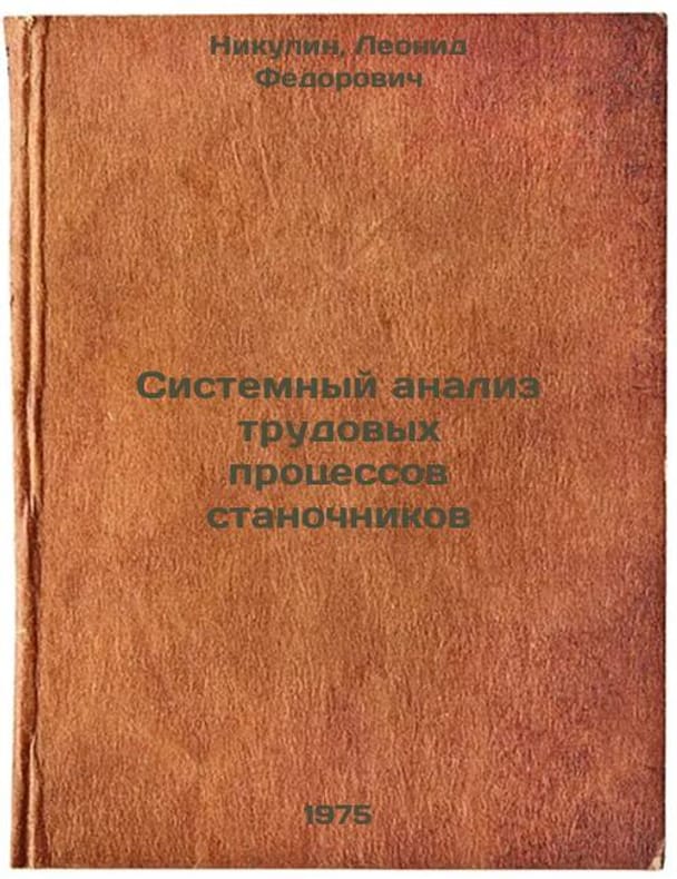 Short description: In Russian. Nikulin, Leonid Fedorovich. Systems analysis of machine tool workers labor processes. Moscow: Economics, 1975. Sistemnyy analiz trudovykh protsessov stanochnikov. In Russian /Systems analysis of machine tool workflows. The image is provided for reference only. It may reflect condition of one of the available copies or only help in identifying the edition. Please feel free to contact us for a detailed description of the copies available. SKU6947073