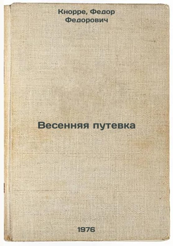 Short description: In Russian. Knorre, Fedor Fedorovich. Spring Vacation. Moscow: Soviet writer, 1976. The image is provided for reference only. It may reflect condition of one of the available copies or only help in identifying the edition. Please feel free to contact us for a detailed description of the copies available. SKU6985593