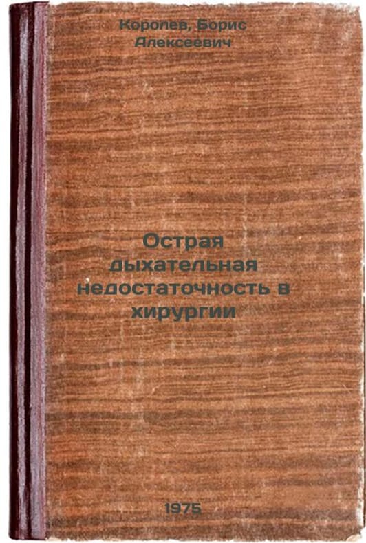 Short description: In Russian. Korolev, Boris Alekseevich. Acute respiratory failure in surgery. Moscow: Medicine, 1975. Ostraya dykhatel'naya nedostatochnost' v khirurgii. In Russian /Acute respiratory failure in surgery. The image is provided for reference only. It may reflect condition of one of the available copies or only help in identifying the edition. Please feel free to contact us for a detailed description of the copies available. SKU6988063