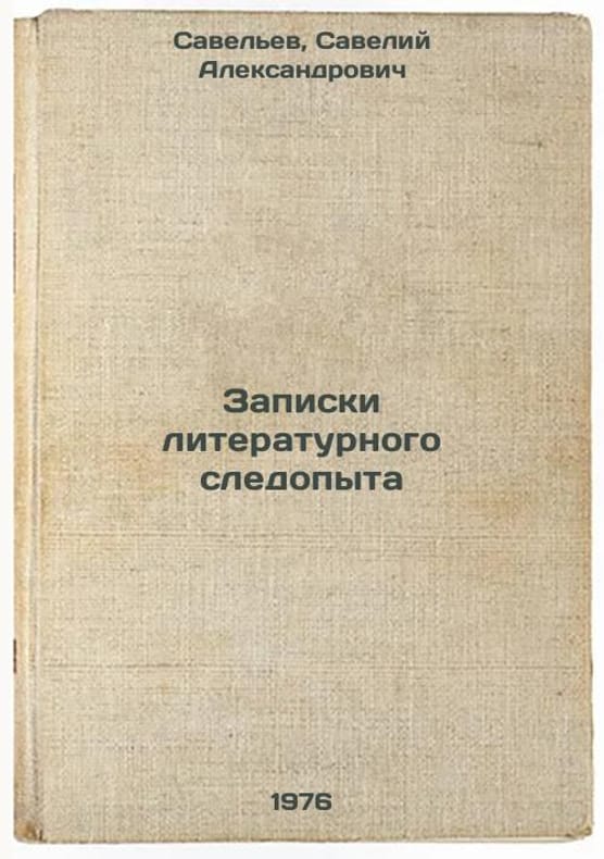 Short description: In Russian. Saveliev, Saveliy Alexandrovich. The Notes of a Literary Tracker. Moscow: The Molograd, 1976. The image is provided for reference only. It may reflect condition of one of the available copies or only help in identifying the edition. Please feel free to contact us for a detailed description of the copies available. SKU6995295