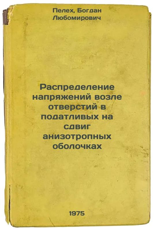 Short description: In Russian. Pelekh, Bogdan Lyubomirovich. Distribution of stresses near openings in shear-prone anisotropic shells. Kiev: Science Thought, 1975. Raspredelenie napryazheniy vozle otverstiy v podatlivykh na sdvig anizotropnykh obolochkakh. In Russian /Distribution of stresses near openings in shear-prone anisotropic shells. The image is provided for reference only. It may reflect condition of one of the available copies or only help in identifying the edition. Please feel free to contact us for a detailed description of the copies available. SKU7008479