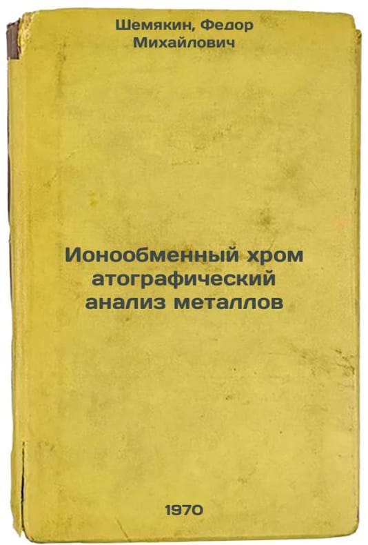 Short description: In Russian. Shemyakin, Fedor Mikhailovich. Ion-exchange chromatographic analysis of metals. Moscow: Metallurgy, 1970. Ionoobmennyy khromatograficheskiy analiz metallov. In Russian /Ion exchange chromatographic analysis of metals. The image is provided for reference only. It may reflect condition of one of the available copies or only help in identifying the edition. Please feel free to contact us for a detailed description of the copies available. SKU7097899
