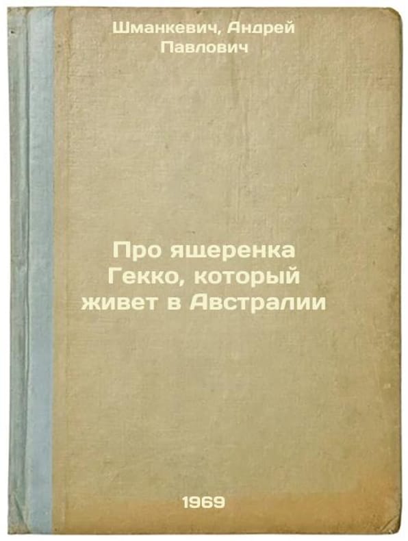 Short description: In Russian. Shmankevich, Andrey Pavlovich. About a Gekko lizard who lives in Australia. Moscow: The Kid, 1969. Pro yashcherenka Gekko, kotoryy zhivet v Avstralii. In Russian /About a Gekko lizard that lives in Australia . The image is provided for reference only. It may reflect condition of one of the available copies or only help in identifying the edition. Please feel free to contact us for a detailed description of the copies available. SKU7101216