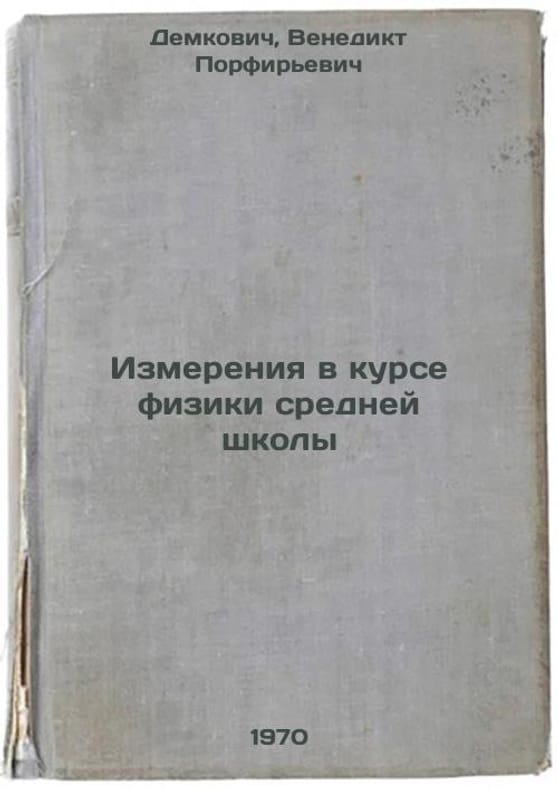 Short description: In Russian. Demkovich, Venedikt Porfirievich. Measurements in High School Physics. Moscow: Enlightenment, 1970. Izmereniya v kurse fiziki sredney shkoly. In Russian /Measurements in High School Physics. The image is provided for reference only. It may reflect condition of one of the available copies or only help in identifying the edition. Please feel free to contact us for a detailed description of the copies available. SKU7108150