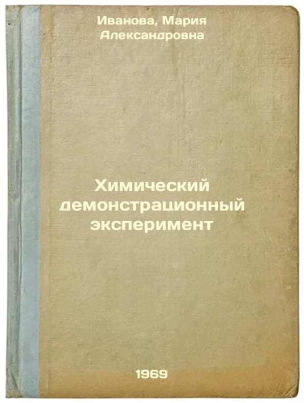 Short description: In Russian. Ivanova, Maria Alexandrovna. Chemical Demonstration Experiment. Moscow: Higher School, 1969. Khimicheskiy demonstratsionnyy eksperiment. In Russian /hemical Demonstration Experimen . The image is provided for reference only. It may reflect condition of one of the available copies or only help in identifying the edition. Please feel free to contact us for a detailed description of the copies available. SKU7121379