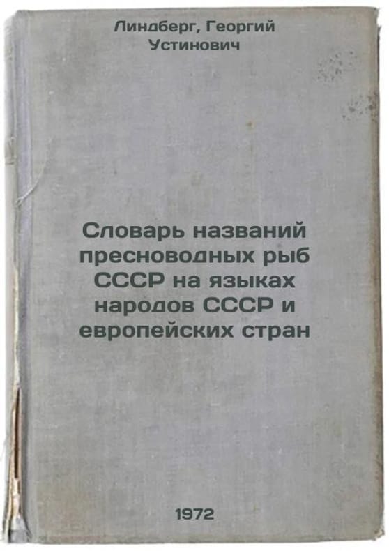 Short description: In Russian. Lindberg, Georgy Ustinovich. Dictionary of names of freshwater fish of the USSR in the languages of the peoples of the USSR and European countries. Leningrad: Science. Leningrad Division, 1972. Slovar nazvaniy presnovodnykh ryb SSSR na yazykakh narodov SSSR i evropeyskikh stran. In Russian/Dictionary of names of freshwater fish of the USSR in the languages of the peoples of the USSR and European countries. The image is provided for reference only. It may reflect condition of one of the available copies or only help in identifying the edition. Please feel free to contact us for a detailed description of the copies available. SKU7156029