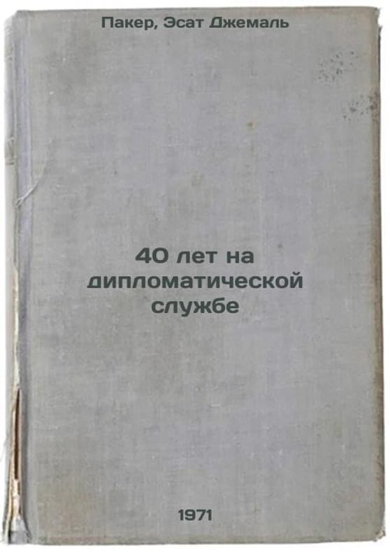 Short description: In Russian. Packer, Esat Dzhemal. 40 years in the diplomatic service. Moscow: Science, 1971. 40 let na diplomaticheskoy sluzhbe. In Russian /40 years in the diplomatic service. The image is provided for reference only. It may reflect condition of one of the available copies or only help in identifying the edition. Please feel free to contact us for a detailed description of the copies available. SKU7312834
