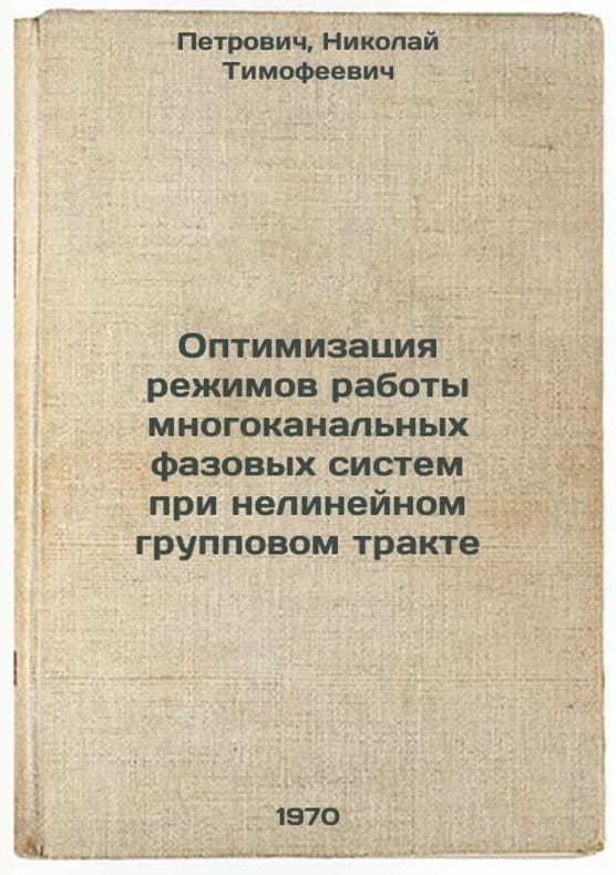 Short description: In Russian. Petrovich, Nikolai Timofeevich. Optimization of modes of operation of multi-channel phase systems in a non-linear group path. Moscow: Communications, 1970. Optimizatsiya rezhimov raboty mnogokanal'nykh fazovykh sistem pri nelineynom gruppovom trakte. In Russian /Optimization of modes of operation of multi-channel phase systems in a non-linear group path. The image is provided for reference only. It may reflect condition of one of the available copies or only help in identifying the edition. Please feel free to contact us for a detailed description of the copies available. SKU7313836