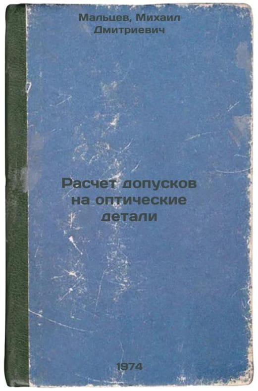 Short description: In Russian. Maltsev, Mikhail Dmitrievich. Calculation of tolerances for optical parts. Moscow: Machine Building, 1974. Raschet dopuskov na opticheskie detali. In Russian /Calculation of optical tolerances. The image is provided for reference only. It may reflect condition of one of the available copies or only help in identifying the edition. Please feel free to contact us for a detailed description of the copies available. SKU7349635