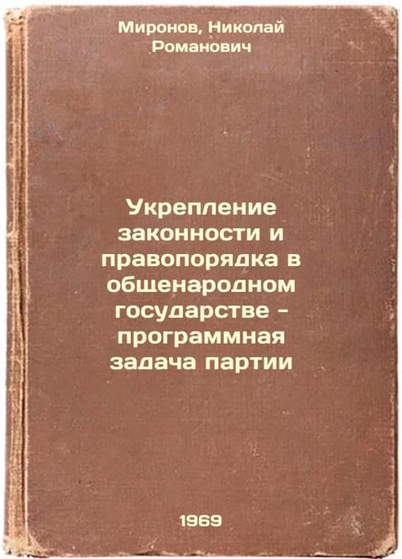 Short description: In Russian. Mironov, Nikolai Romanovich. Strengthening law and order in a nation-wide state is the Party's programmatic task. Ukreplenie zakonnosti i pravoporyadka v obshchenarodnom gosudarstve - programmnaya zadacha partii. In Russian /Strengthening the rule of law in a nation-wide state is the Party's programmatic task . The image is provided for reference only. It may reflect condition of one of the available copies or only help in identifying the edition. Please feel free to contact us for a detailed description of the copies available. SKU7372923