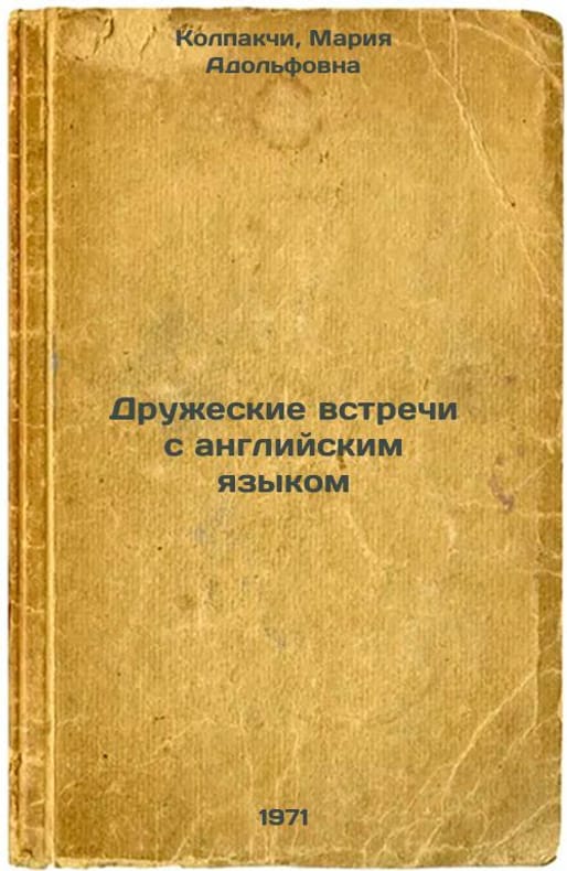 Short description: In Russian. Kolpakchi, Maria Adolfovna. Friendly Encounters with English. Chisinau: Lumina, 1971. Druzheskie vstrechi s angliyskim yazykom. In Russian /Friendly Encounters with English. The image is provided for reference only. It may reflect condition of one of the available copies or only help in identifying the edition. Please feel free to contact us for a detailed description of the copies available. SKU7405601