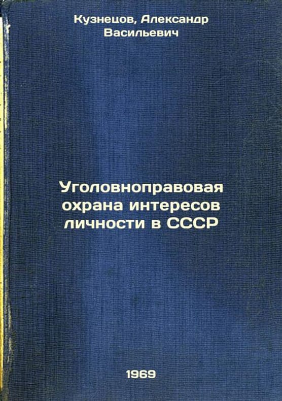 Short description: In Russian. Kuznetsov, Alexander Vasilievich. Criminal Law Protection of Individual Interests in the USSR. Moscow: Law, 1969. Please feel free to contact us for a detailed description of the copies available. SKU7421591