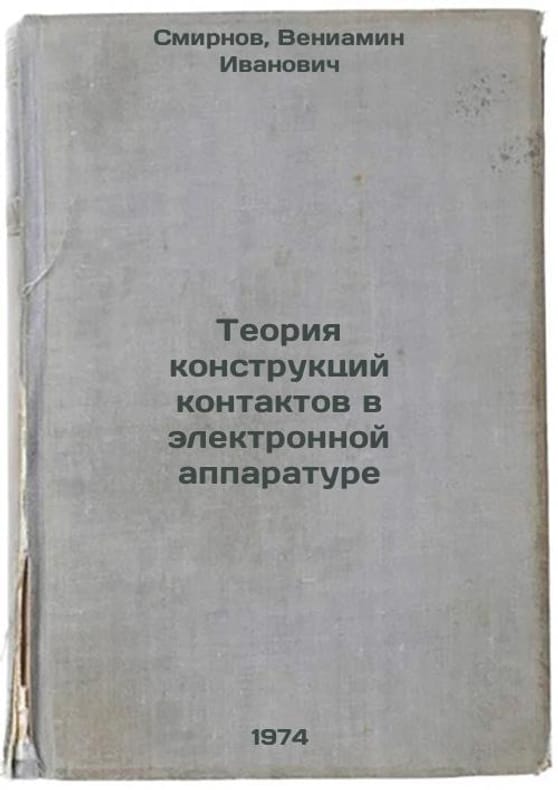 Short description: In Russian. Smirnov, Veniamin Ivanovich. Theory of contact constructions in electronic equipment. Moscow: Sov. radio, 1974. Teoriya konstruktsiy kontaktov v elektronnoy apparature. In Russian /Theory of contact designs in electronic equipment. The image is provided for reference only. It may reflect condition of one of the available copies or only help in identifying the edition. Please feel free to contact us for a detailed description of the copies available. SKU7448739