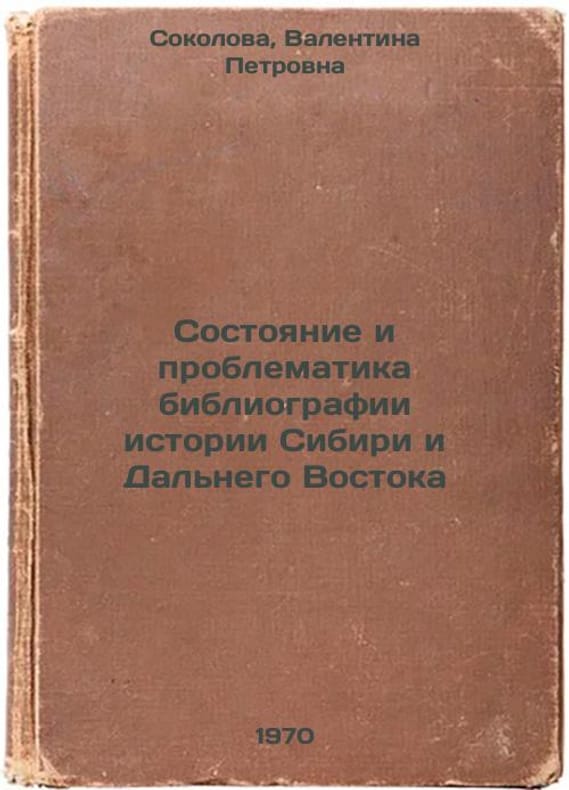 Short description: In Russian. Sokolova, Valentina Petrovna. The state and problems of the bibliography of the history of Siberia and the Far East. Novosibirsk: 1970. Sostoyanie i problematika bibliografii istorii Sibiri i Dal'nego Vostoka. In Russian /State and problems of the bibliography of the history of Siberia and the Far East. The image is provided for reference only. It may reflect condition of one of the available copies or only help in identifying the edition. Please feel free to contact us for a detailed description of the copies available. SKU7455632