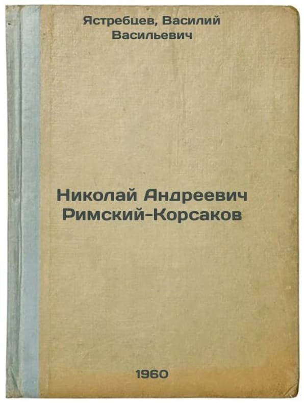 Short description: In Russian. Yastrebtsev, Vasily Vasilievich. Nikolai Andreevich Rimsky-Korsakov. Leningrad: Muzgiz, 1959. Nikolay Andreevich Rimskiy-Korsakov. In Russian /Nikolai Andreevich Rimsky-Korsakov . The image is provided for reference only. It may reflect condition of one of the available copies or only help in identifying the edition. Please feel free to contact us for a detailed description of the copies available. SKU7484736