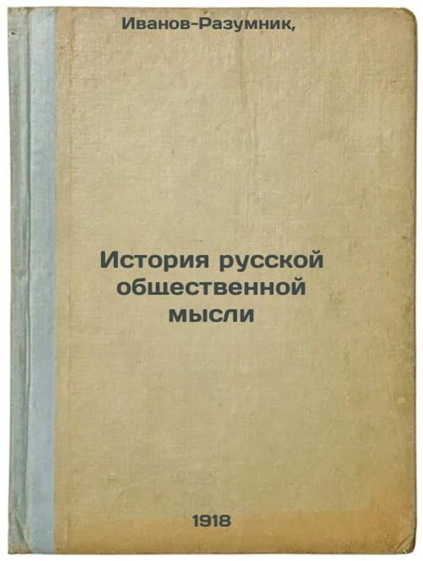 Short description: In Russian. Ivanov-Razumnik,. History of Russian Public Thought. Ptg.: Revolutionary Thought, 1918. Istoriya russkoy obshchestvennoy mysli. In Russian /History of Russian Public Thought. The image is provided for reference only. It may reflect condition of one of the available copies or only help in identifying the edition. Please feel free to contact us for a detailed description of the copies available. SKU7526081