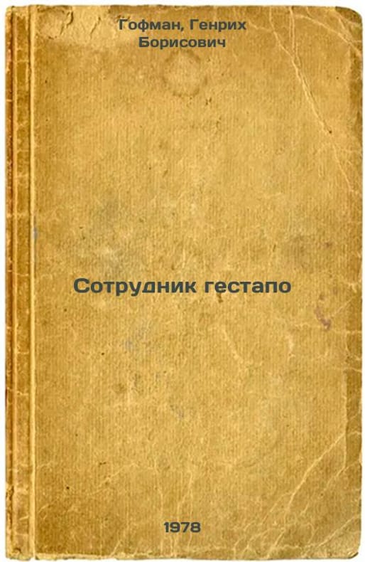 Short description: In Russian. Hoffmann, Heinrich Borisovich. Gestapo officer. Moscow: Voenizdat, 1978 The image is provided for reference only. It may reflect condition of one of the available copies or only help in identifying the edition. Please feel free to contact us for a detailed description of the copies available. SKU7620995