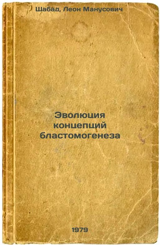 Short description: In Russian. Shabad, Leon Manusovich. Evolution of blastomogenesis concepts. Moscow: Medicine, 1979 The image is provided for reference only. It may reflect condition of one of the available copies or only help in identifying the edition. Please feel free to contact us for a detailed description of the copies available. SKU7628369