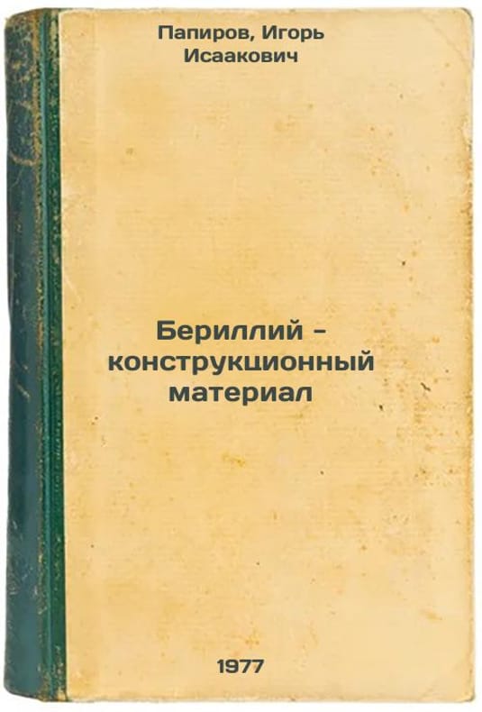 Short description: In Russian. Papirov, Igor Isaakovich. Beryllium - structural material. Moscow: Machine Building, 1977. Berilliy - konstruktsionnyy material. In Russian /Beryllium - structural material. The image is provided for reference only. It may reflect condition of one of the available copies or only help in identifying the edition. Please feel free to contact us for a detailed description of the copies available. SKU7649258