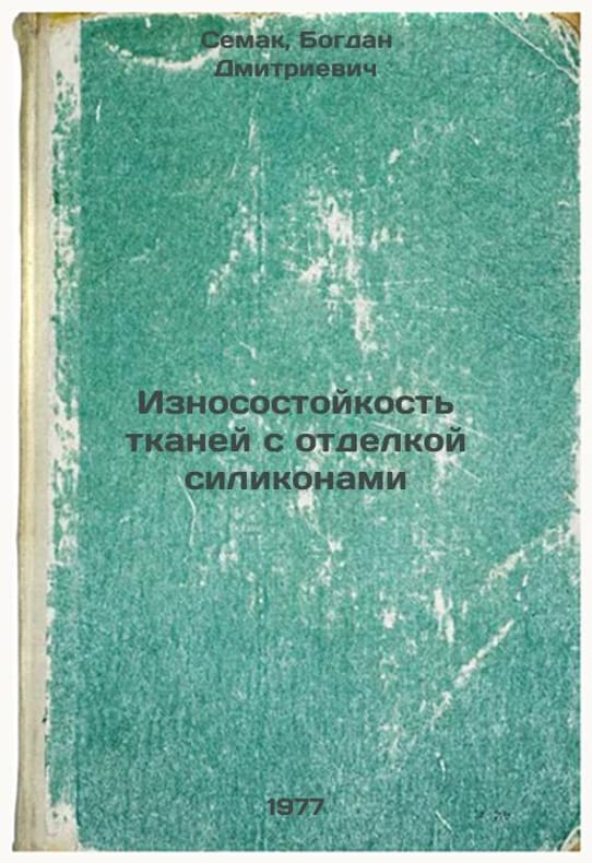 Short description: In Russian. Semak, Bogdan Dmitrievich. Wear resistance of fabrics with silicone finish. Moscow: Light Industry, 1977. Iznosostoykost' tkaney s otdelkoy silikonami. In Russian /Wear resistance of fabrics with silicone finish. The image is provided for reference only. It may reflect condition of one of the available copies or only help in identifying the edition. Please feel free to contact us for a detailed description of the copies available. SKU7650273