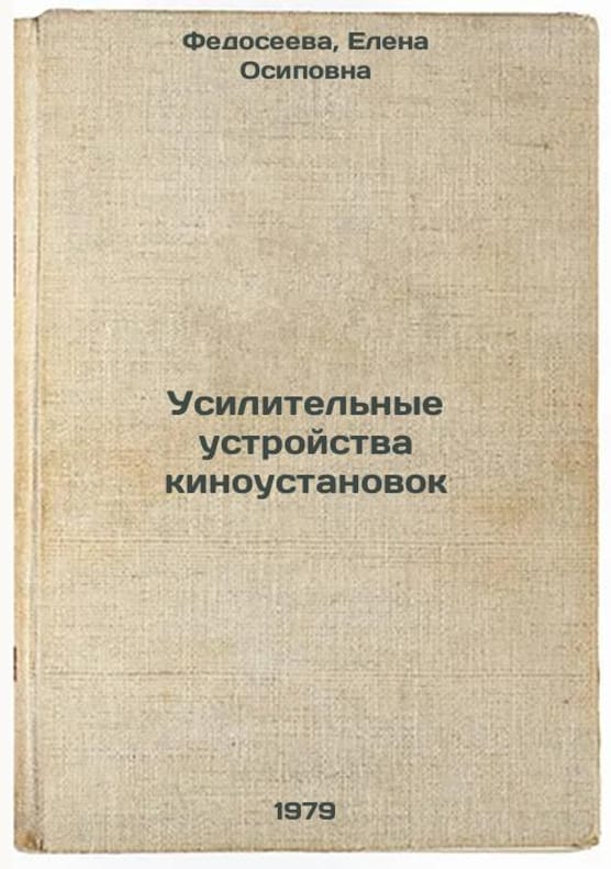 Short description: In Russian. Fedoseeeva, Elena Osipovna. Amplification devices of film installations. Moscow: Art, 1979 Usilitelnye ustroystva kinoustanovok/Amplification devices of film installations In Russian. The image is provided for reference only. It may reflect condition of one of the available copies or only help in identifying the edition. Please feel free to contact us for a detailed description of the copies available. SKU7666931