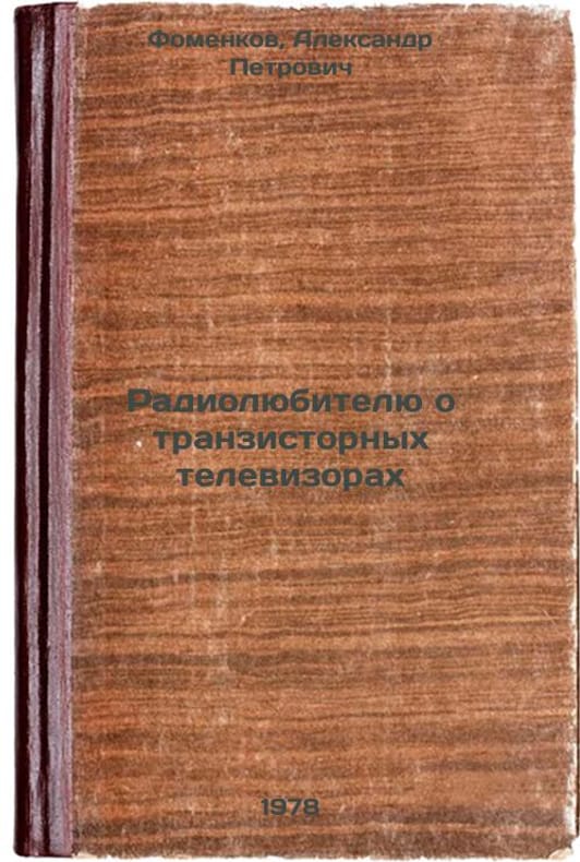Short description: In Russian. Fomenkov, Alexander Petrovich. To an amateur radio journalist about transistor televisions. Moscow: DOSAAF Publishing House, 1978 Radiolyubitelyu o tranzistornykh televizorakh/Radio enthusiast about transistor TVs In Russian. The image is provided for reference only. It may reflect condition of one of the available copies or only help in identifying the edition. Please feel free to contact us for a detailed description of the copies available. SKU7668299