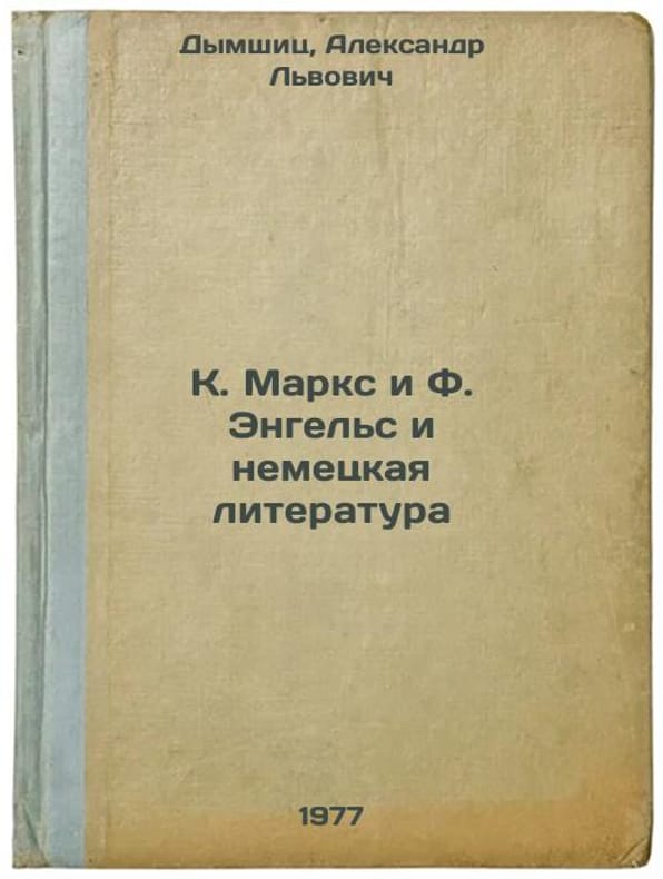 Short description: In Russian. Dymshits, Alexander Lvovich. K. Marx and F. Engels and German Literature. Moscow: Art Lit., 1977. K. Marks i F. Engel's i nemetskaya literatura. In Russian /K. Marx and F. Engels and German Literature. The image is provided for reference only. It may reflect condition of one of the available copies or only help in identifying the edition. Please feel free to contact us for a detailed description of the copies available. SKU7671189