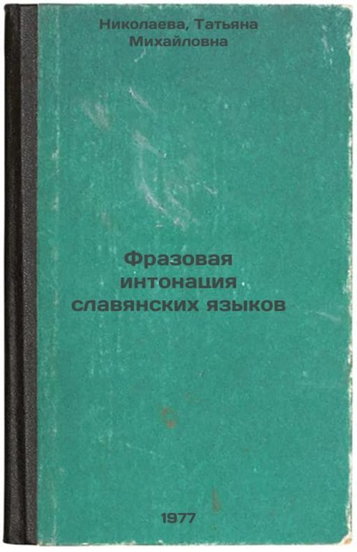 Short description: In Russian. Nikolaeva, Tatyana Mikhailovna. Phrasonic intonation of Slavic languages. Moscow: Science, 1977. Frazovaya intonatsiya slavyanskikh yazykov. In Russian /Phrasonic intonation of Slavic languages. The image is provided for reference only. It may reflect condition of one of the available copies or only help in identifying the edition. Please feel free to contact us for a detailed description of the copies available. SKU7691526