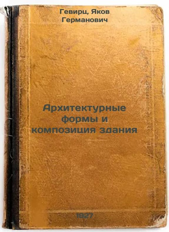 Short description: In Russian. Gevirts, Yakov Germanovich. Architectural forms and composition of the building. Moscow: Moscow JSC Leningrad: 1927. Arkhitekturnye formy i kompozitsiya zdaniya. In Russian /Architectural forms and composition of the building. The image is provided for reference only. It may reflect condition of one of the available copies or only help in identifying the edition. Please feel free to contact us for a detailed description of the copies available. SKU8129443