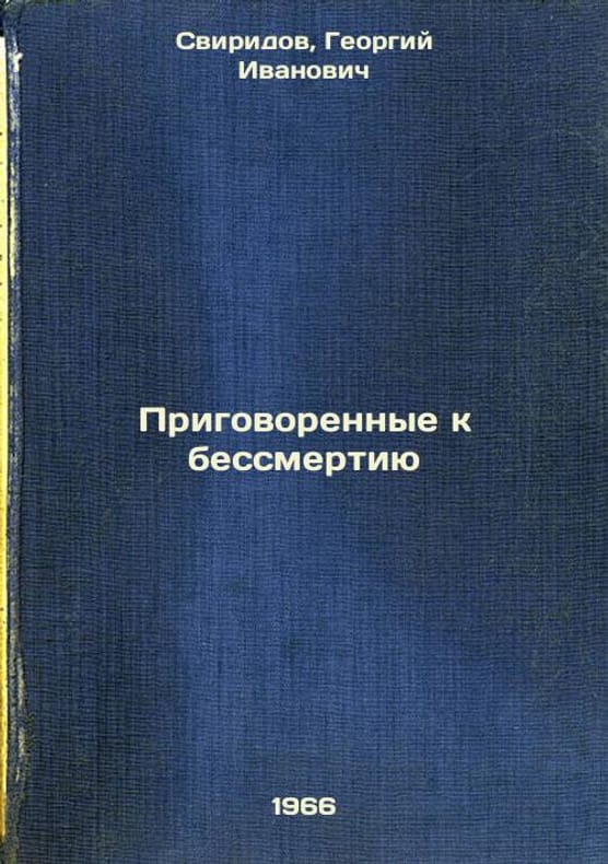 Short description: In Russian. Sviridov, Georgy Ivanovich. Sentenced to Immortality. Moscow: Profizdat, 1966. The image is provided for reference only. It may reflect condition of one of the available copies or only help in identifying the edition. Please feel free to contact us for a detailed description of the copies available. SKU8392373