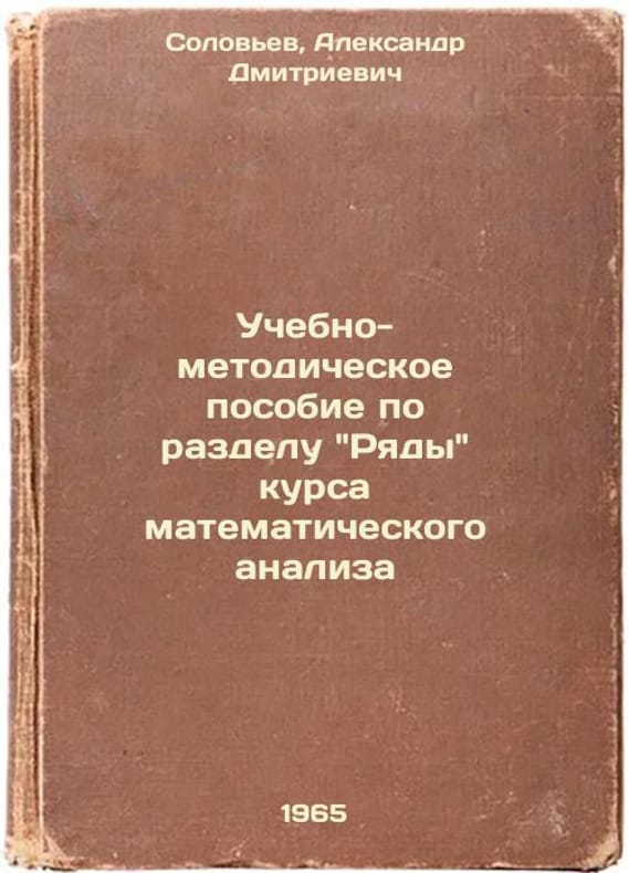 Short description: In Russian. Solovyov, Alexander Dmitrievich. Teaching and Methodological Manual for the Series Section of the Mathematical Analysis Course. Moscow: Moscow University Publishing House, 1965. Uchebno-metodicheskoe posobie po razdelu Ryady kursa matematicheskogo analiza. In Russian /Teaching manual for the series section of the mathematical analysis course . The image is provided for reference only. It may reflect condition of one of the available copies or only help in identifying the edition. Please feel free to contact us for a detailed description of the copies available. SKU8394891