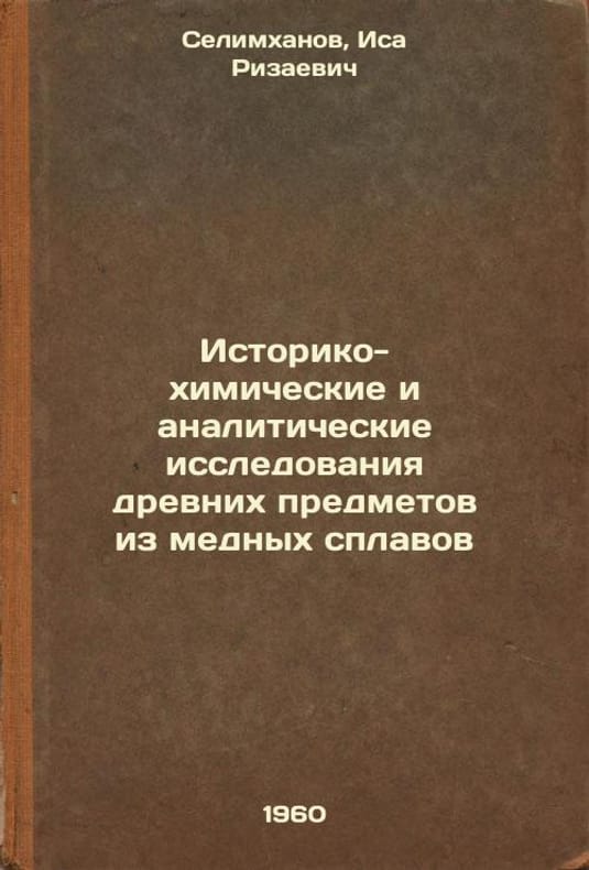 Short description: In Russian. Selimkhanov, Isa Rizaevich. Historical-Chemical and Analytical Studies of Ancient Copper Alloy Objects. Baku: Akad. of Sciences of the AzSSR, 1960. Istoriko-khimicheskie i analiticheskie issledovaniya drevnikh predmetov iz mednykh splavov. In Russian /Historical-chemical and analytical studies of ancient copper alloy objects . The image is provided for reference only. It may reflect condition of one of the available copies or only help in identifying the edition. Please feel free to contact us for a detailed description of the copies available. SKU8403391