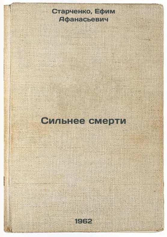 Short description: In Russian. Starchenko, Efim Afanasyevich. Stronger than death. Chisinau: Map of Moldovenyasca, 1962. The image is provided for reference only. It may reflect condition of one of the available copies or only help in identifying the edition. Please feel free to contact us for a detailed description of the copies available. SKU8408925