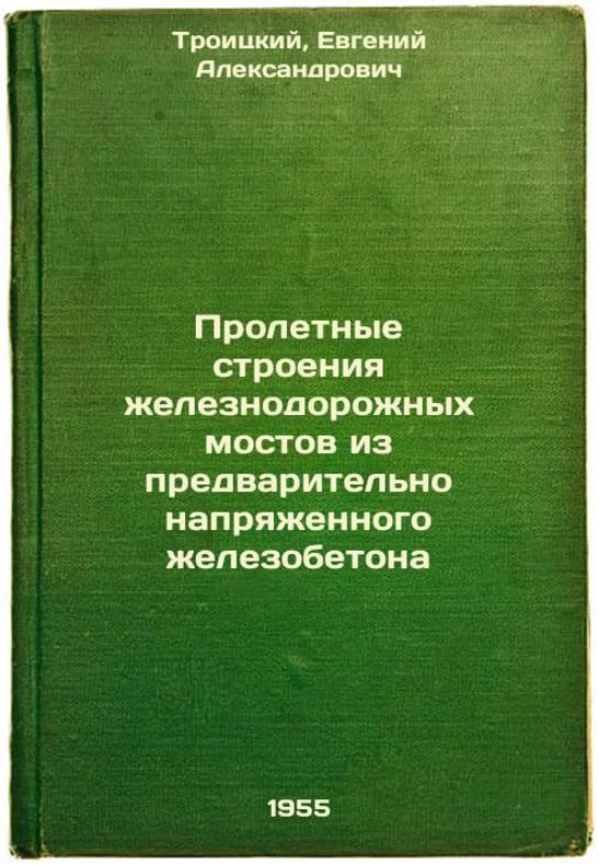 Short description: In Russian. Troitsky, Evgeniy Alexandrovich. Railway bridges made of pre-stressed reinforced concrete. Moscow: Transjeldorizdat, 1955. Proletnye stroeniya zheleznodorozhnykh mostov iz predvaritel'no napryazhennogo zhelezobetona. In Russian /Railway bridges made of pre-stressed reinforced concrete . The image is provided for reference only. It may reflect condition of one of the available copies or only help in identifying the edition. Please feel free to contact us for a detailed description of the copies available. SKU8417092