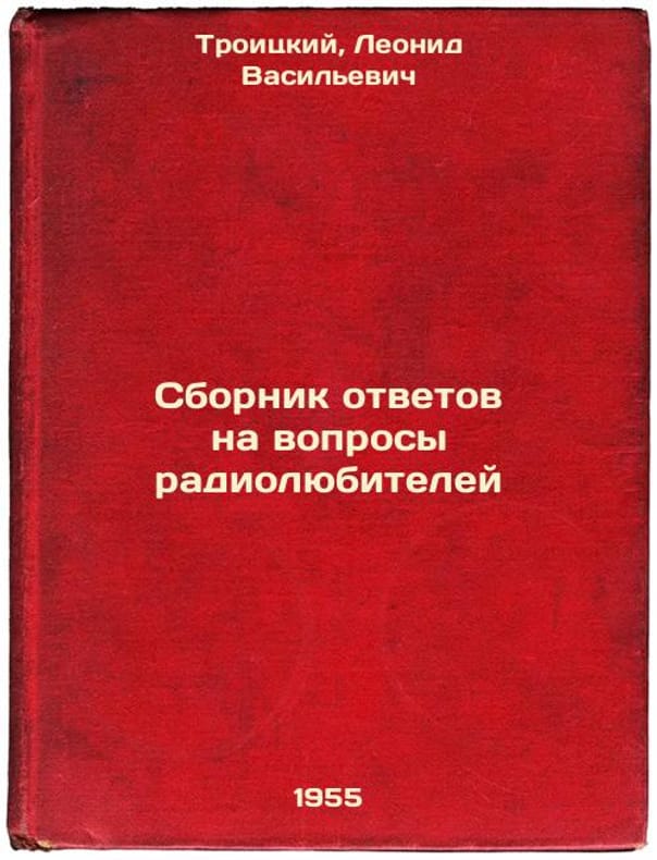 "Short description: In Russian. Troitsky, Leonid Vasilievich. Compendium of Answers to Questions from Radio Amateurs. Moscow; Leningrad: Gosenergoizdat, 1954. Sbornik otvetov na voprosy radiolyubiteley. In Russian /Compendium of Answers to Amateur Radio Questions . The image is provided for reference only. It may reflect condition of one of the available copies or only help in identifying the edition. Please feel free to contact us for a detailed description of the copies available. SKU8417134"
