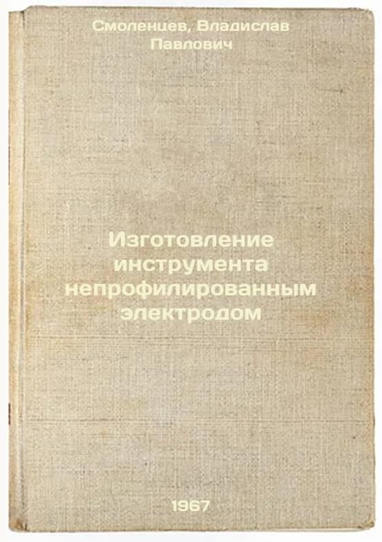 Short description: In Russian. Smolentsev, Vladislav Pavlovich. Manufacture of tools with a non-profile electrode. Moscow: Machine Building, 1967. Izgotovlenie instrumenta neprofilirovannym elektrodom. In Russian /Manufacture of tools by non-profile electrode . The image is provided for reference only. It may reflect condition of one of the available copies or only help in identifying the edition. Please feel free to contact us for a detailed description of the copies available. SKU8420862