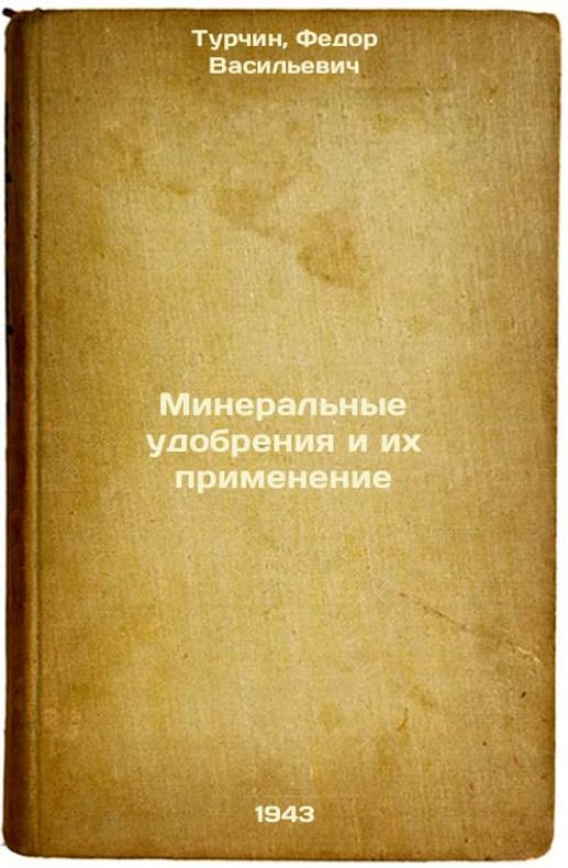 "Short description: In Russian. Turchin, Fedor Vasilievich. Mineral fertilizers and their application. Moscow; Leningrad: Publishing House of Acad. sciences of the USSR, 1943. Mineral'nye udobreniya i ikh primenenie. In Russian /Mineral fertilizers and their application . The image is provided for reference only. It may reflect condition of one of the available copies or only help in identifying the edition. Please feel free to contact us for a detailed description of the copies available. SKU8427942"