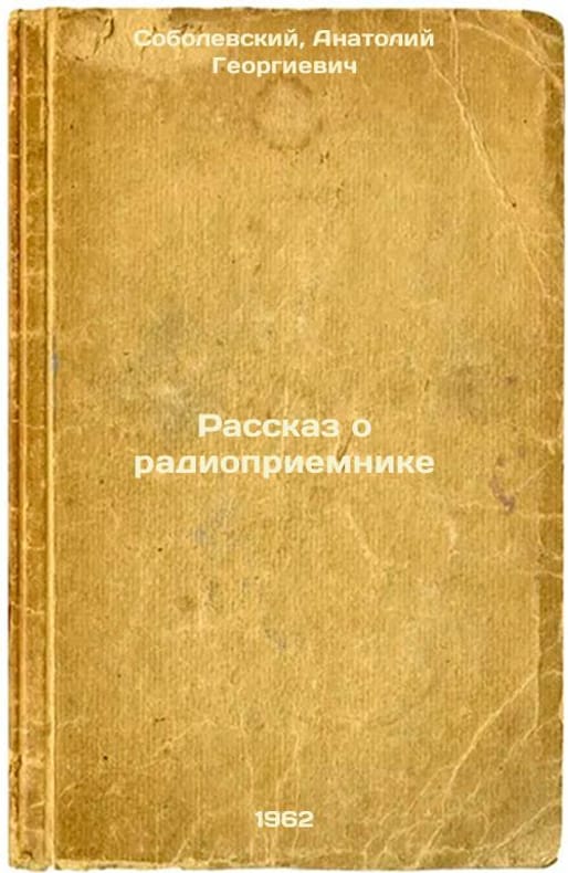 "Short description: In Russian. Sobolevsky, Anatoly Georgievich. A story about a radio receiver. Moscow; Leningrad: Gosenergoizdat, 1962. The image is provided for reference only. It may reflect condition of one of the available copies or only help in identifying the edition. Please feel free to contact us for a detailed description of the copies available. SKU8428973"