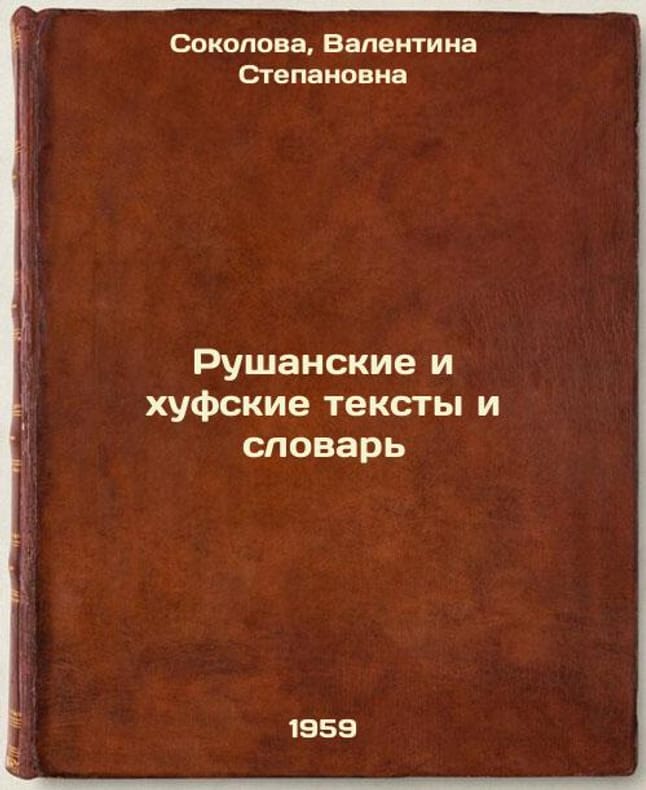 "Short description: In Russian. Sokolova, Valentina Stepanovna. Rushan and Huf texts and vocabulary. Moscow; Leningrad: Publishing House of Acad. sciences of the USSR. Leningrad branch, 1959. Rushanskie i khufskie teksty i slovar'. In Russian /Rushan and Huf texts and vocabulary . The image is provided for reference only. It may reflect condition of one of the available copies or only help in identifying the edition. Please feel free to contact us for a detailed description of the copies available. SKU8431462"