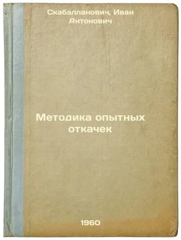 Short description: In Russian. Skaballanovich, Ivan Antonovich. Methodology of Experimental Pumps. Moscow: Gosgeoltekhizdat, 1960. The image is provided for reference only. It may reflect condition of one of the available copies or only help in identifying the edition. Please feel free to contact us for a detailed description of the copies available. SKU8434724