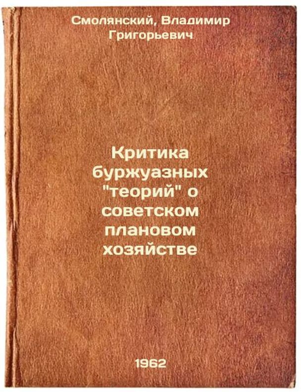 Short description: In Russian. Smolyansky, Vladimir Grigorievich. Criticism of bourgeois theories about Soviet planned economy. Moscow: Higher School, 1962. Please feel free to contact us for a detailed description of the copies available. SKU8438886